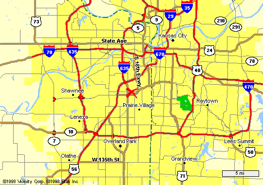 Continue traveling towards the East on I-70 to I-635 Turn South (right) on I-635 (I-635 turns into Metcalf after you pass over I-35) Stay on I-635/Metcalf turn East on Shawnee Mission Parkway (also W. 63rd St.) (to go East on Shawnee Mission Parkway- go UNDER the bridge & take the first right, around the cloverleaf and OVER the bridge you just went under) Take Shawnee Mission Parkway East to Lamar (the first light) Turn left on Lamar (North) Go past 61st St. to Martway Turn right on Martway to 6101 (it will be on your right- about a block down) See Photo of building. top/map |