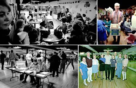 Romayne Phillips and Bill Hatton counting ballots while members dance. |